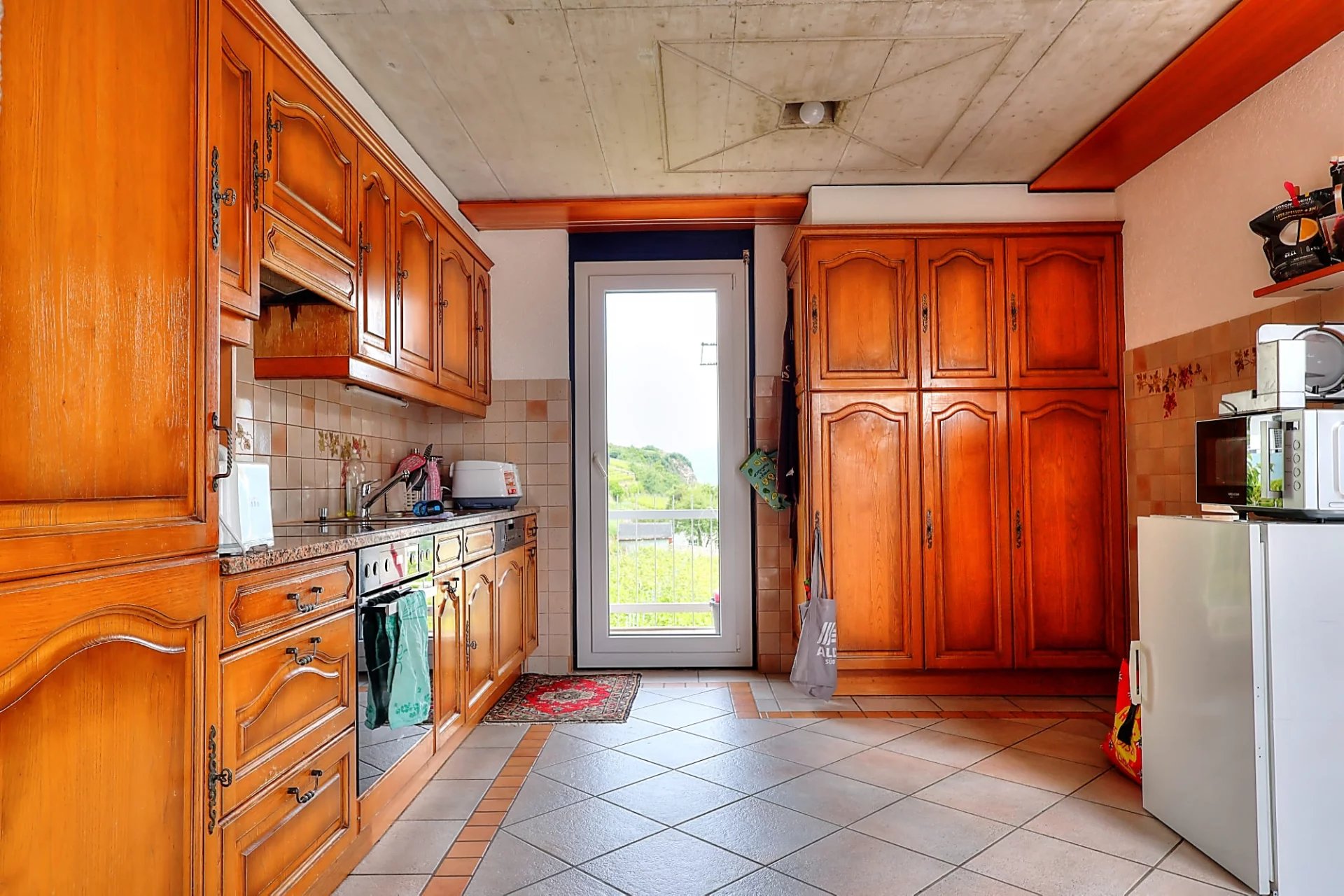 - Cuisine équipée avec avec nombreux espaces de rangement et accès au premier balcon