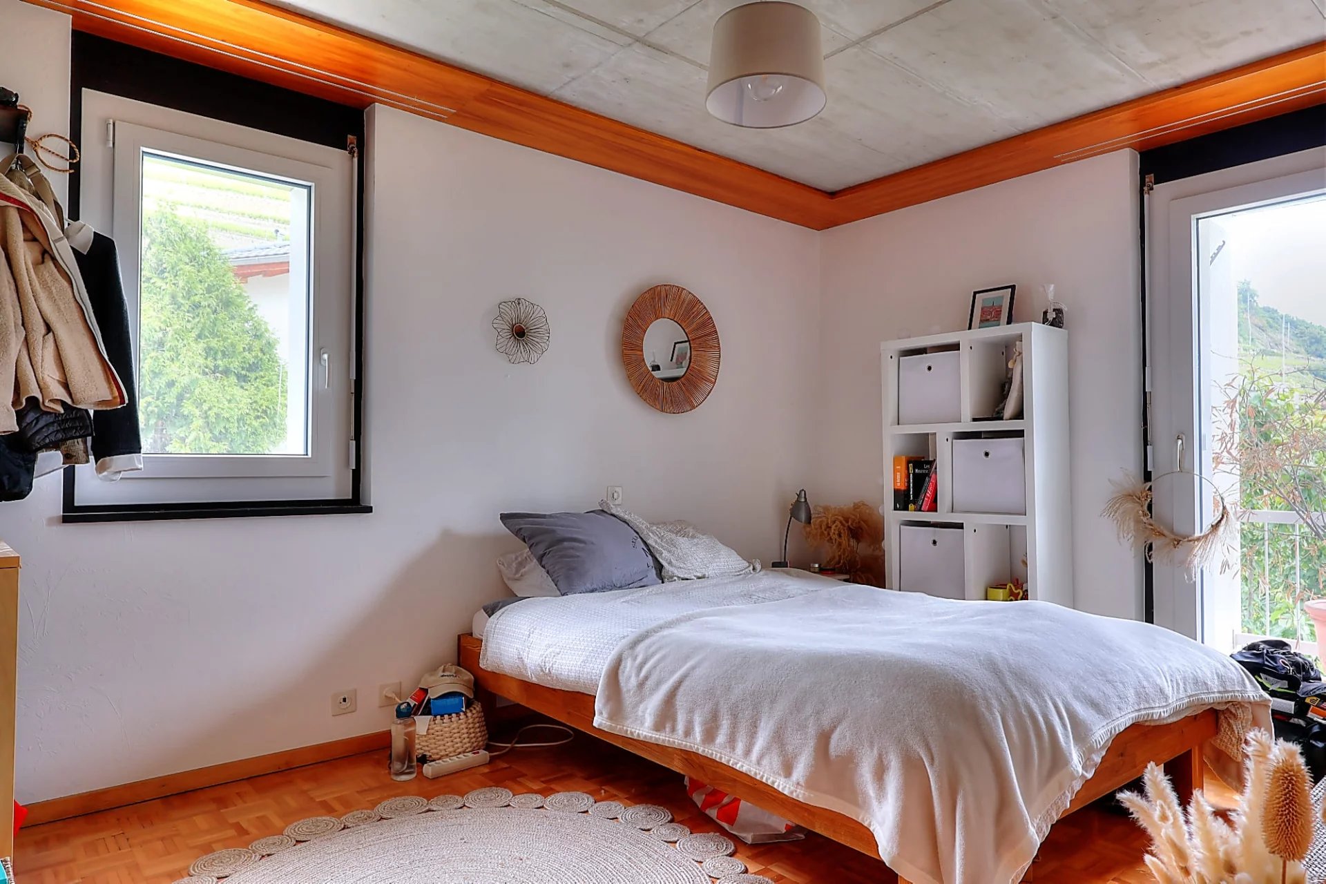 Les volumes sont agréables, l'appartement lumineux et dispose de nombreux espaces de rangement avec armoires encastrées, ce qui offre un confort de vie très appréciable à ses habitants avec un calme environnant et entouré d'un bel espace vert, au cœur des vignes.